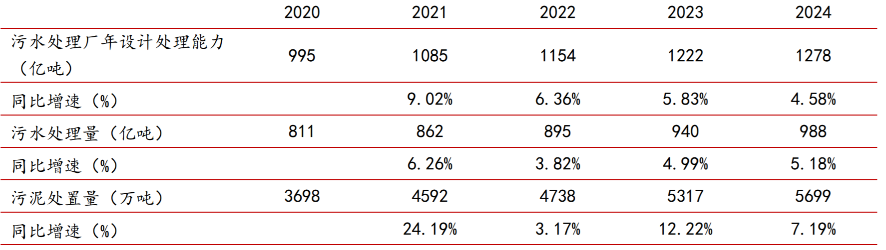 从生态环境部披露数据可知,2024年,全国纳入排放源统计调查的污水处理厂共15259家,污水处理厂设计处理能力为3.5亿吨/日,年化约1278亿吨/年(按365日计算);2024年,全国共处理污水988.4亿吨,污水处理厂的污泥产生量为5730.7万吨,污泥处置量为5699.1万吨。从趋势来看,污水处理厂产能增速逐步趋缓,污水处理量维持稳健增长,与压滤机需求相关的污泥处置量增速明显快于污水处理量增速。
