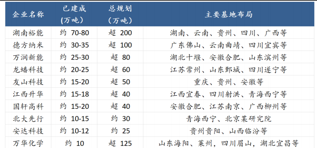 图:中国磷酸铁锂前10大企业产能(截至25年底) |