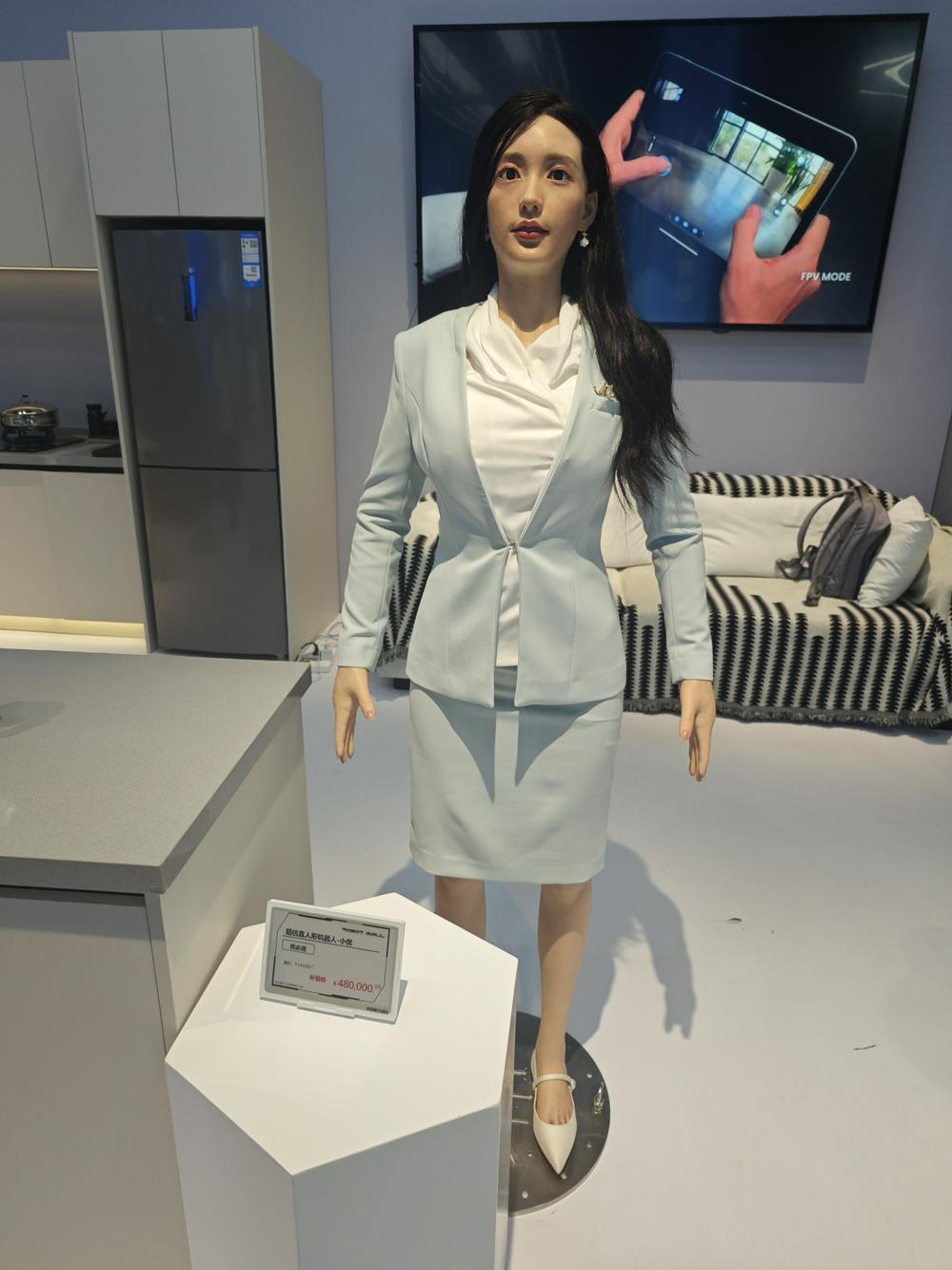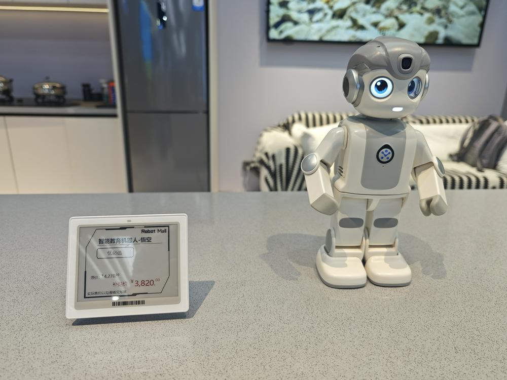 记者看到,在在桌面AI机器人展区,每个机器人商品标牌上均有价格标签。