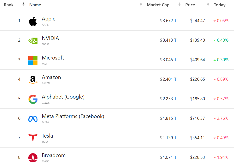 大型科技股涨跌不一,(按市值排列)苹果跌0.05%;英伟达涨0.40%;微软涨0.30%;亚马逊跌0.89%;谷歌C跌0.57%;Meta跌2.76%,结束20连涨;特斯拉跌0.49%;博通跌1.94%。