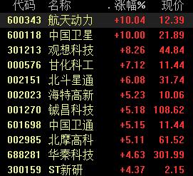 周三盘中,军工股涨幅居前,截至发稿,航天动力、中国卫星涨停,观想科技大涨8%,甘化科工、北斗星通、海特高新等不同程度上涨。