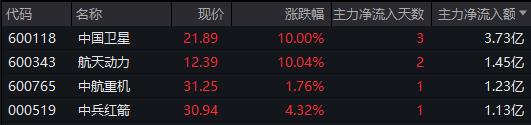 截至发稿,军工板块获主力资金净流入超17亿元,其中,中国卫星获主力加仓3.73亿元,航天动力、中航重机、中兵红箭均获净流入超1亿元。