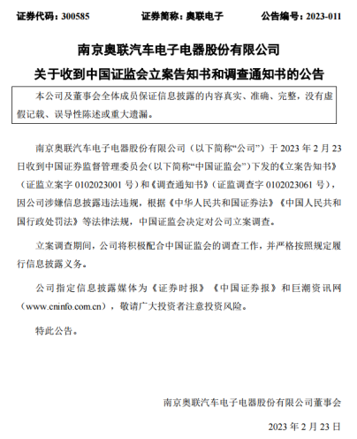 眼看双方各执一词僵持不下,监管也着急了,2月23日,证监会对奥联电子立案调查。在监管介入后,相信事实真相很快会水落石出。