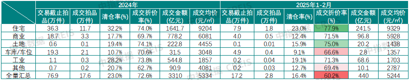 中指研究院:1-2月全国各类法拍房累计成交约2.82万套 拍品成交折价率约75%