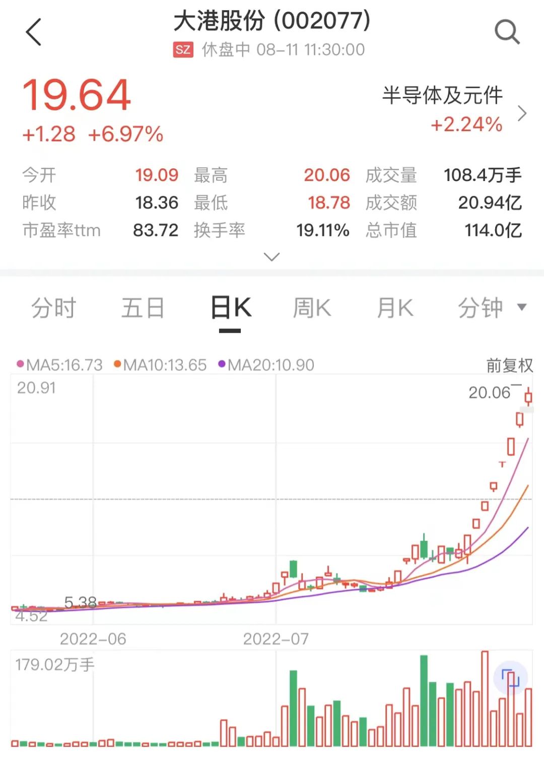 自7月21日涨停以来,大港股份股价“起飞”。