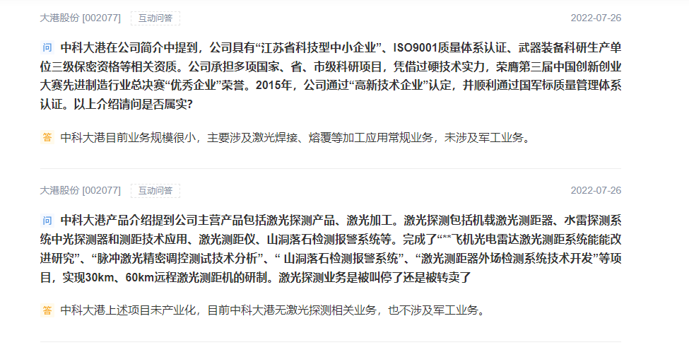 大港股份股价上涨期间,投资者在互动平台抛出各种业务相关的问题。