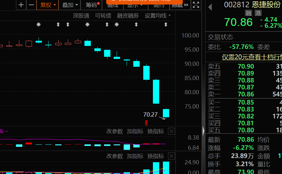 从股价上来看,恩捷股份已连续9个交易日下跌,其中本周二出现跌停,累计跌幅达到27.49%。周二盘后龙虎榜数据显示,恩捷股份遭到4家机构席位净卖出,合计净卖出3.26亿元。长线来看,恩捷股份从去年7月开始股价持续走下坡路,最新价较去年年初的高点已跌去74.72%。