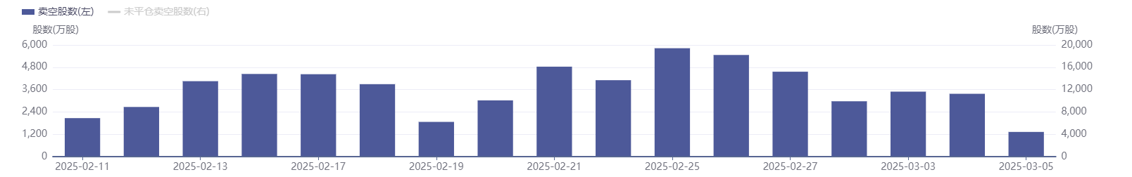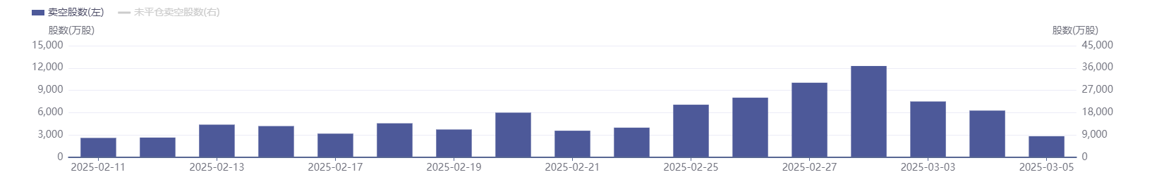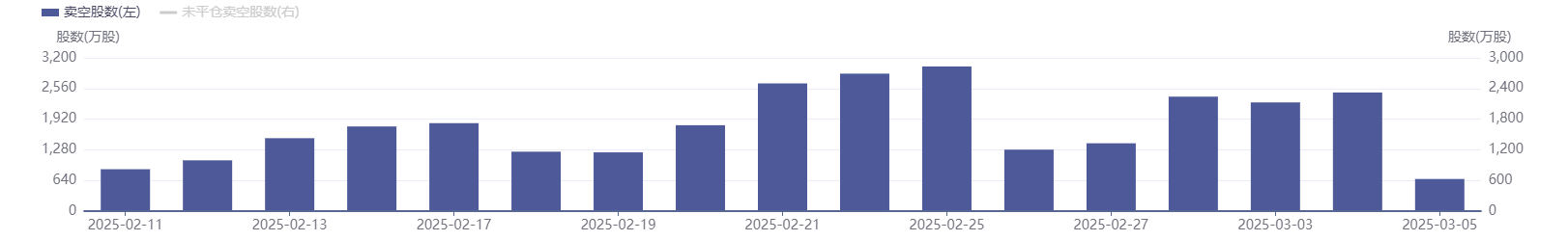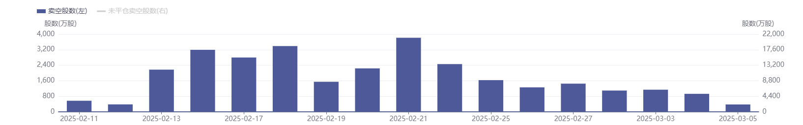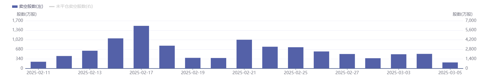 不过中芯国际成为例外。该公司的卖空股数从2月26日的1283.10万股升至至3月4日的2476.25万股。同期卖空比例也从6.94%升至12.02%。