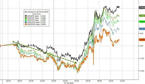 在下半年的首个交易日,美债多头隔夜其实已经经历了一次小小的挫折——当天公布的职位空缺和劳动力流动调查(JOLTS)报告显示,5月份职位空缺意外大幅增加——这是劳动力市场强劲的迹象,一度引发了美债市场的抛售行情。