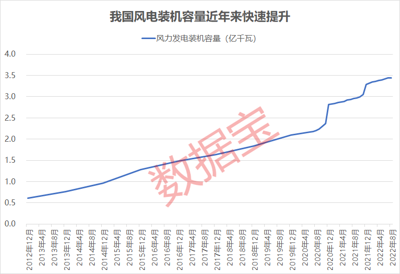 今年以来,我国风电发展进程持续向好。国家能源局数据显示,截至2022年8月,我国风电装机容量约3.4亿千瓦,同比增长16.6%,1-8月,新增发电装机容量1614万千瓦,同比增长10.3%,风电电源工程投资完成828亿元。