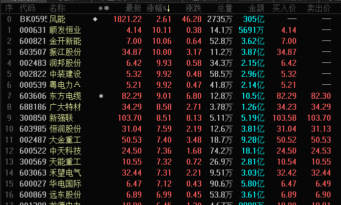 受此消息影响,10月21日早盘风电板块整体拉升。海力风电高开高走,早盘上涨6.25%,金开新能、振江股份、中装建设等多股涨停封板,东方电缆开盘触及涨停板,收盘涨9.01%,新强联、恒润股份、大金重工等风电概念股涨幅居前。