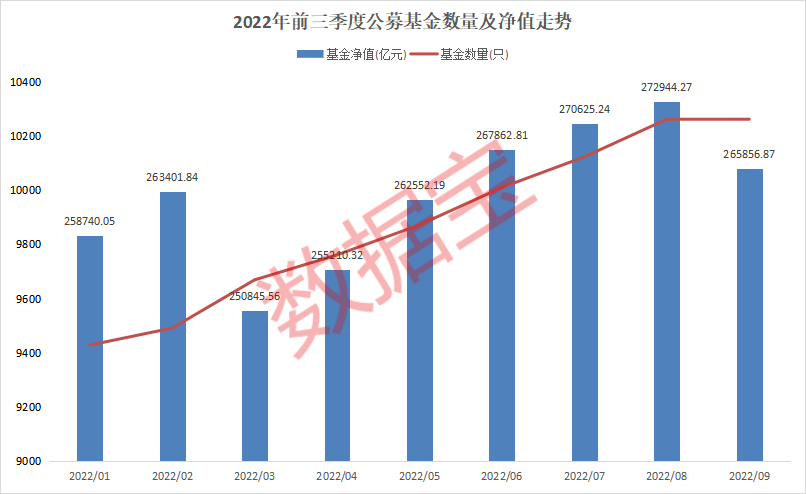 公募基金三季报近日正式收官。中基协数据显示,截至2022年9月,我国境内公募基金资产净值合计26.59万亿元,公募基金数量继续扩容,9月达到10263只。