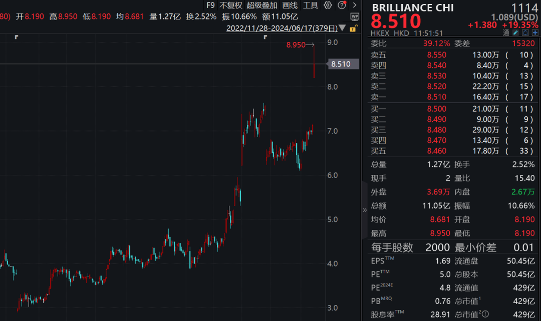 港股汽车板块亦强势上攻,恒生汽车主题指数大涨逾2%。华晨中国放量飙升,一度涨逾25%,创近6年来新高(复权),截至发稿涨幅收窄至19.35%。另外,新晨动力、比亚迪股份、长城汽车等涨幅居前。