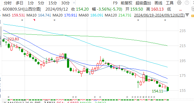 9月12日,古井贡酒、贵州茅台、山西汾酒等白酒股跌超3%,泸州老窖、今世缘、水井坊等多股跌超2%。值得注意的是,随着近期白酒股股价不断下跌,古井贡酒、贵州茅台、山西汾酒、泸州老窖等多只白酒股创阶段新低。
