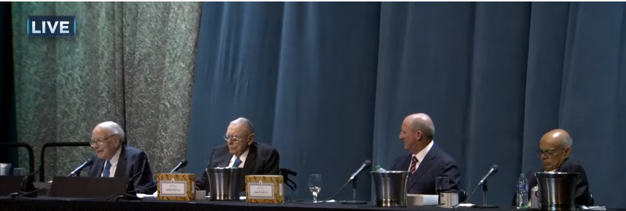 在本次大会上,现年92岁的巴菲特和现年99岁的芒格依旧精神奕奕,回答了长达五个小时的提问。同时,巴菲特的继任者——现年60岁的格雷格·阿贝尔(GregAbel)和71岁的阿吉特·贾恩(AjitJain)也参加了上半场的问答。