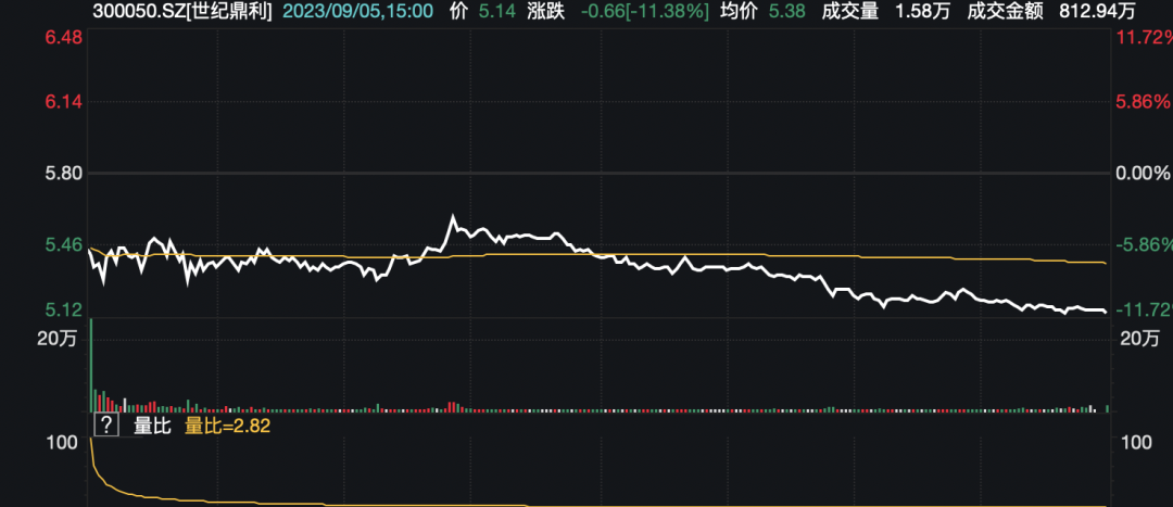 世纪鼎利(300050)今日午后大幅跳水,截至收盘,该股跌11.38%报5.14元,全日成交9.31亿元,换手率超30%。此前两日,该股累计大涨38.4%。
