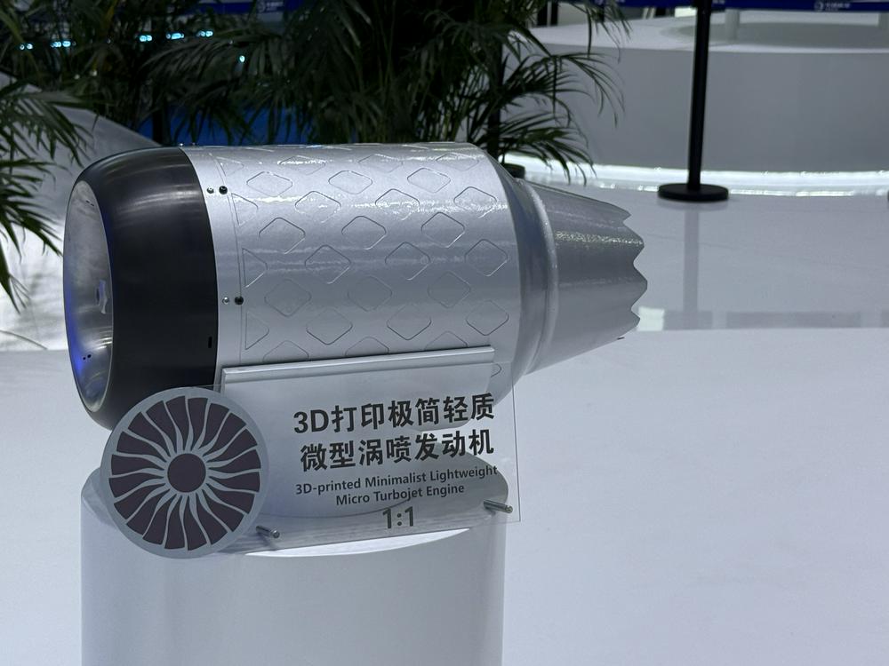 此外,相较于其他体格庞大的航空发动机,展台上一台名为3D打印极简轻质微型涡喷发动机展品有些与众不同。据介绍,该型发动机可用作高端航模、小型飞机、无人机等飞行器的动力装置。