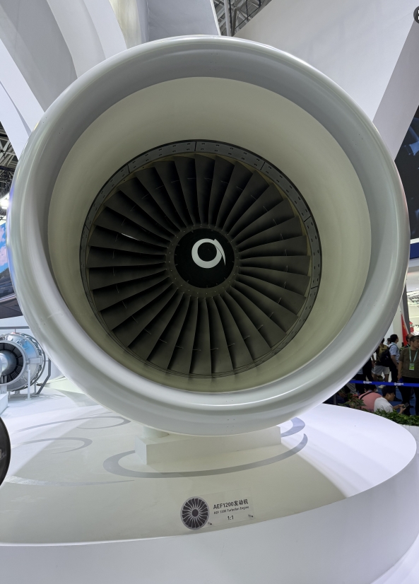首次亮相的AEF1200发动机在展厅中格外醒目,据介绍,该发动机是我国自主研制的第一型大涵道比双转子涡轮风扇发动机,填补了我国航空动力领域的空白,将为我国大型飞机提供系列动力。