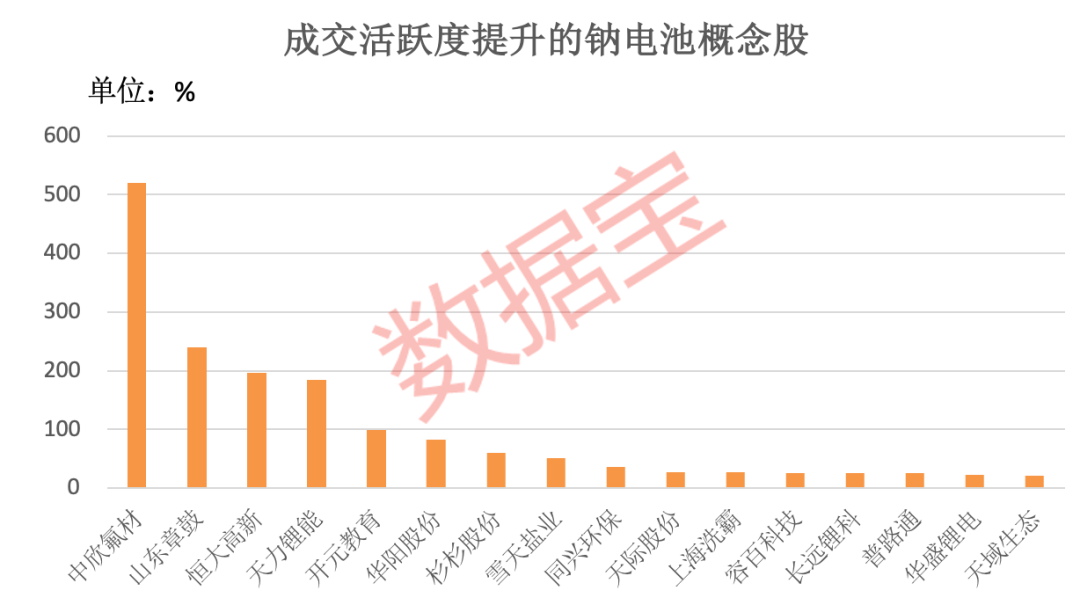 16只概念股日均成交环比增幅超20%,中欣氟材、山东章鼓、恒大高新、天力锂能均环比增幅翻倍。