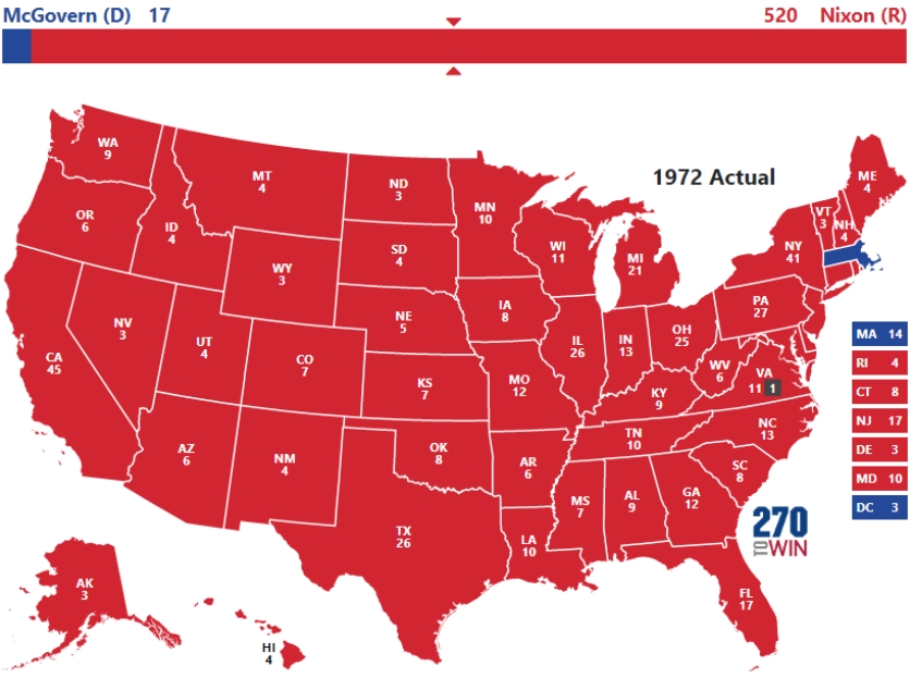 (1972年选举人票结果,来源:270towin)