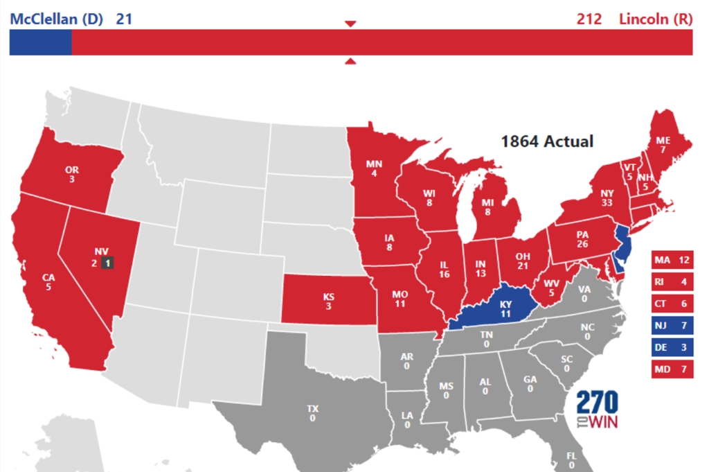 (1864年选举结果,来源:270towin)