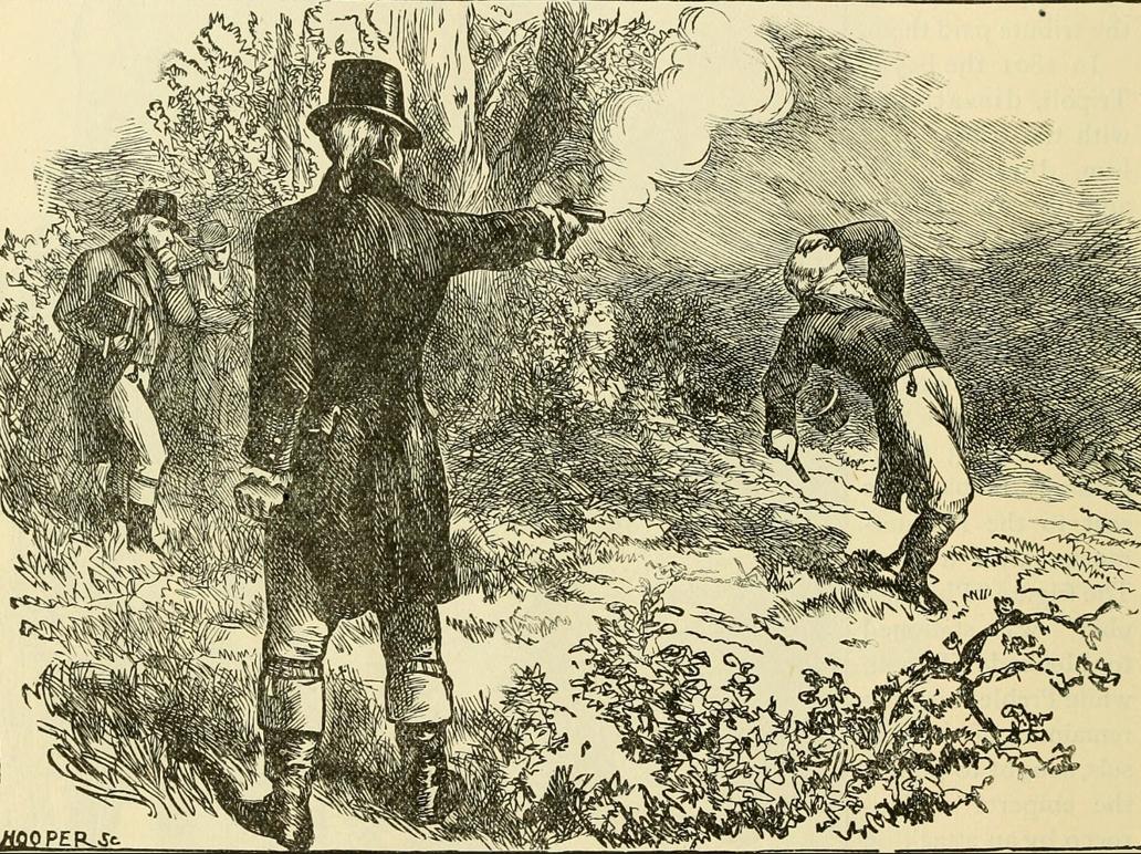 (亚伦·伯尔与亚历山大·汉密尔顿的决斗插画,来源:哈里·达文波特1901年著作《我们伟大的国家》)