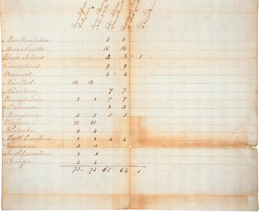 (1800年大选选举人计票结果,来源:美国国家档案馆)