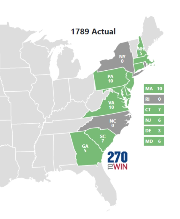 (在1788-1789年选举中,美国总共只有11个州参选,来源:270towin)