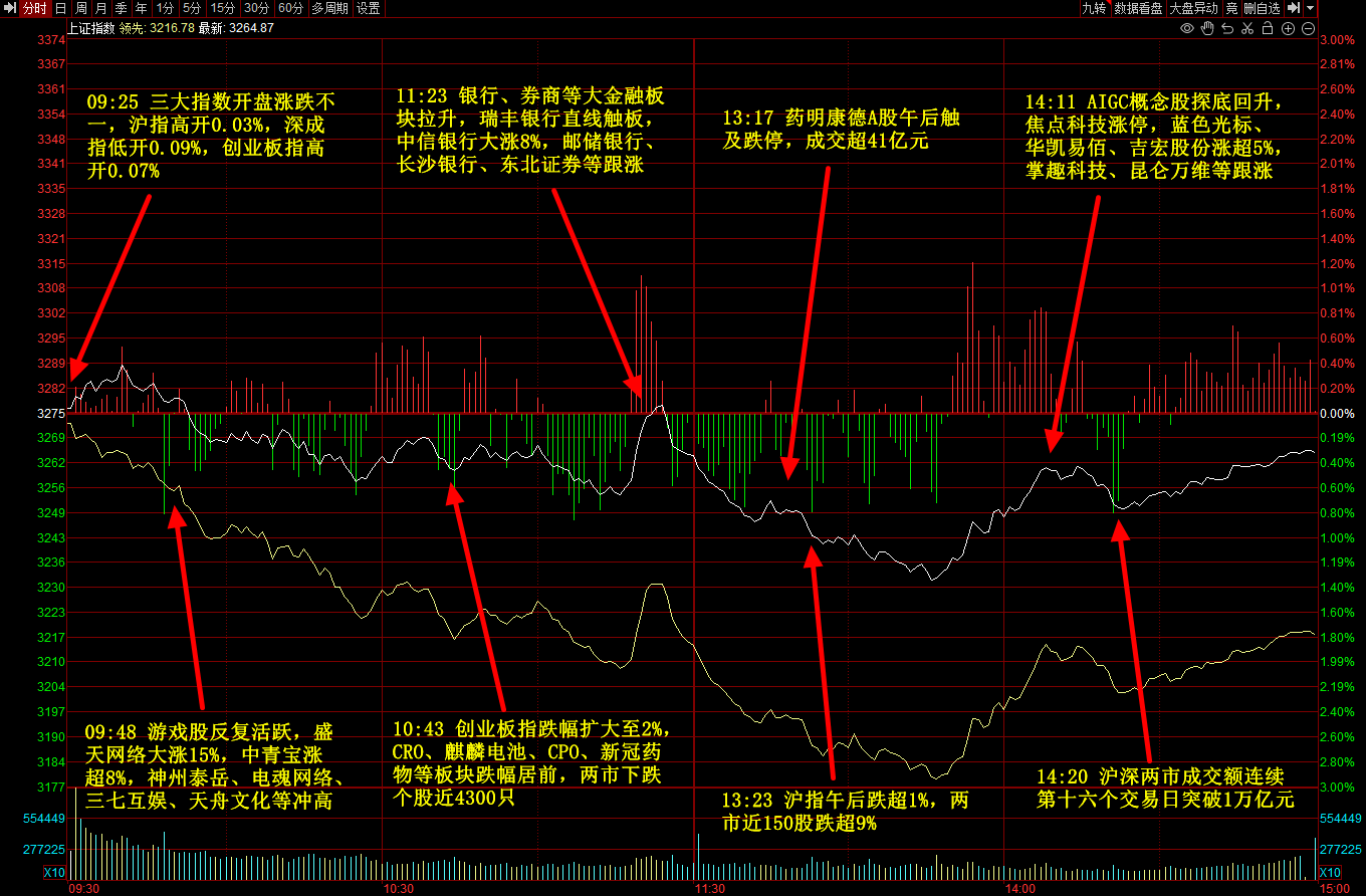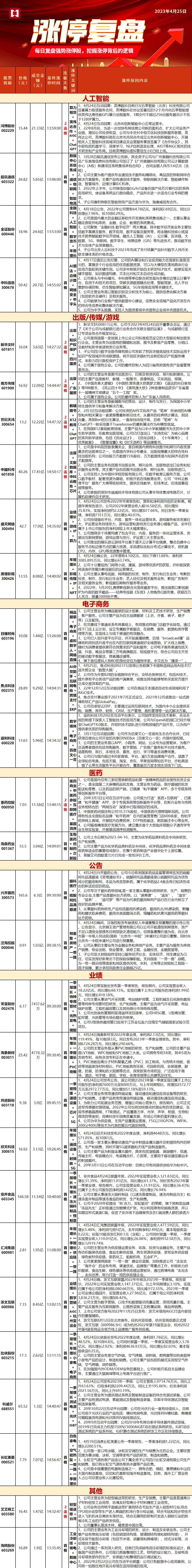 人工智能主线热度继续居高不下,活跃资金继续聚焦AI大模型以及游戏、传媒、电商等应用方向。传媒股世纪天鸿20CM两连板,中国科传11天7板,南方传媒5天4板,新华文轩2连板。算力叠加游戏鸿博股份2连板,另外焦点科技6天3板,金证股份、浙文互联涨停,万兴科技、方直科技、乐歌股份、神州泰岳涨10%。