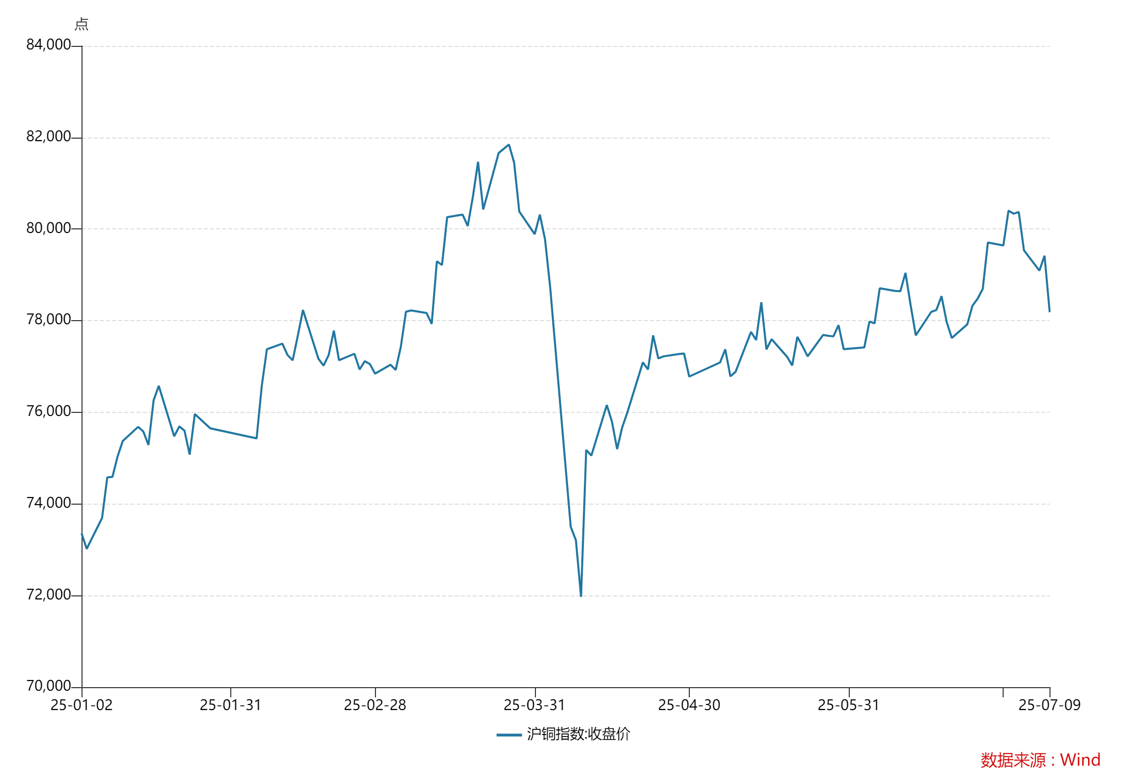 昨日,美国总统特朗普宣布50%进口铜关税将于8月1日生效,纽约铜应声直线拉升,日内涨幅一度扩大至17%创历史新高.沪铜夜盘冲高至80300元后回落,日间持续走低至78750元,最终收报78940元/吨,隔月价差扩大至360元。铜价的短期瞬间下跌引发市场广泛关注。