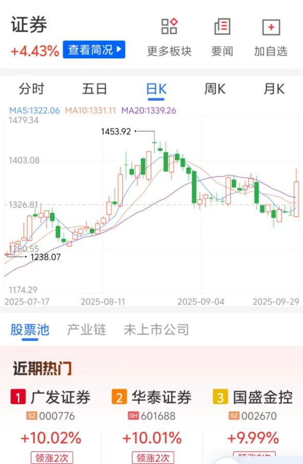 一是消息面刺激,包括央行会议提“维护资本市场稳定”,券商佣金“禁止‘万1免5’及低于成本价收费”的反内卷传闻,以及政治局会议影响;二是卖方研究普遍预计券商三季度业绩高增,营收同比、环比分别增50%、21%;三是近月券商股回调到位,股价与基本面背离;四是资金面上,机构调仓与节前护盘共振。