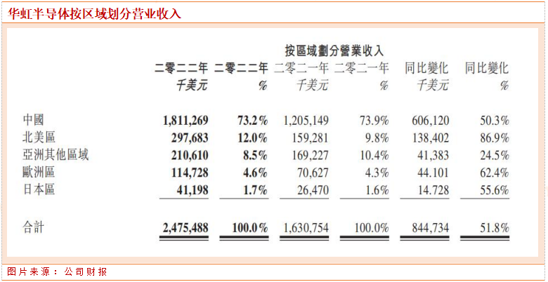 30日晚,华虹半导体发布了2022年度报告,公司实现营业收入24.755亿美元,同比2021年增长51.8%;实现归属净利润4.5亿美元,同比增长72.1%。