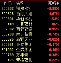今天上午,房地产开发、水泥、钢铁、建筑装饰等地产基建产业链表现活跃。