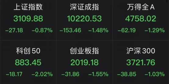 上午收盘,上证指数下跌0.87%,深证成指下跌1.48%,创业板指下跌1.55%。星闪、无人驾驶、液冷服务器等科技板块大跌,而地产基建产业链、煤炭油气等资源股表现活跃。