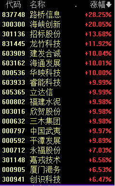 受政策利好刺激,福建板块上午表现抢眼,掀起涨停潮。