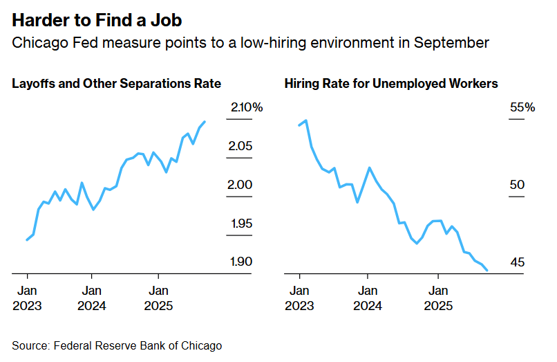 在美国找工作更难了——芝加哥联储的指标显示9月处于低招聘环境