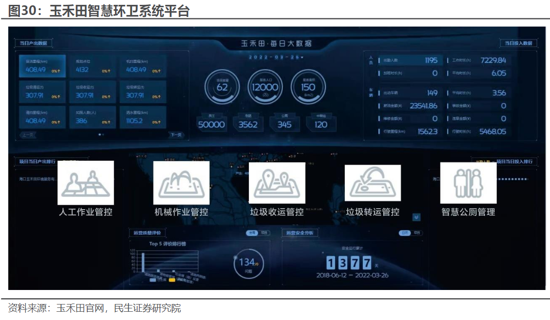 玉禾田:公司从物业保洁领域发展成为全方位一体化城市环境综合运营服务商,集市政环卫、综合物业、垃圾分类、再生资源、园林绿化城市景观照明等诸多核心业务于一身,聚焦物联网和大数据等前沿技术手段,进而在智慧城市建设领域持续发力。
