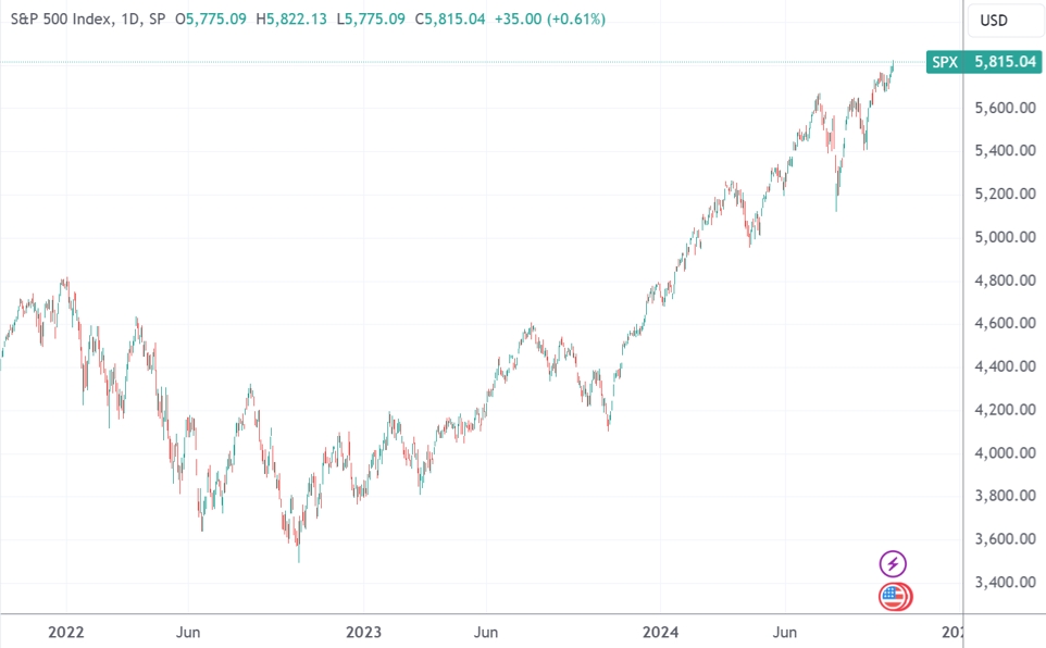 (标普500指数的美股牛市本周恰好度过两周年,来源:TradingView)