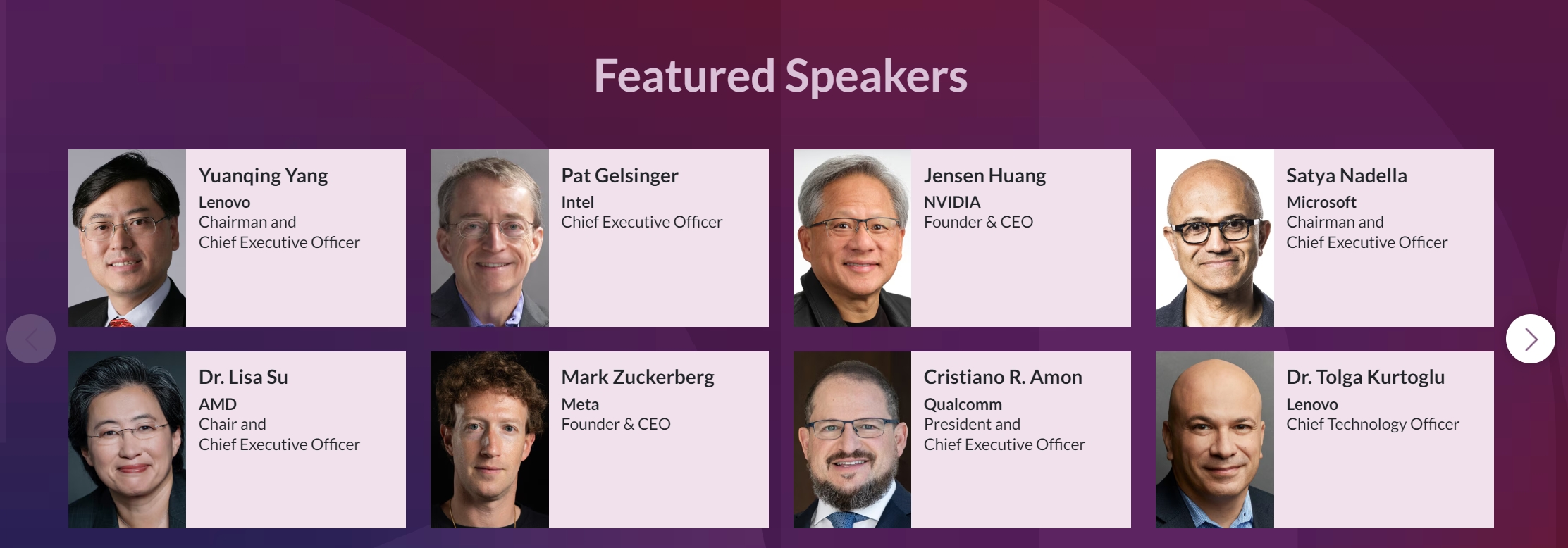 联想将在周二举行“科技世界2024”活动,除了主办方外,联想请来了纳德拉、黄仁勋、苏姿丰、扎克伯格,以及英特尔和高通的掌门前来捧场。