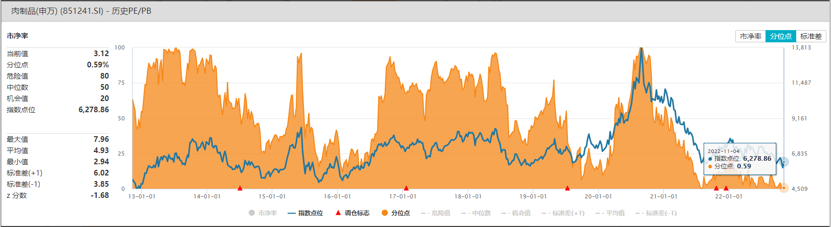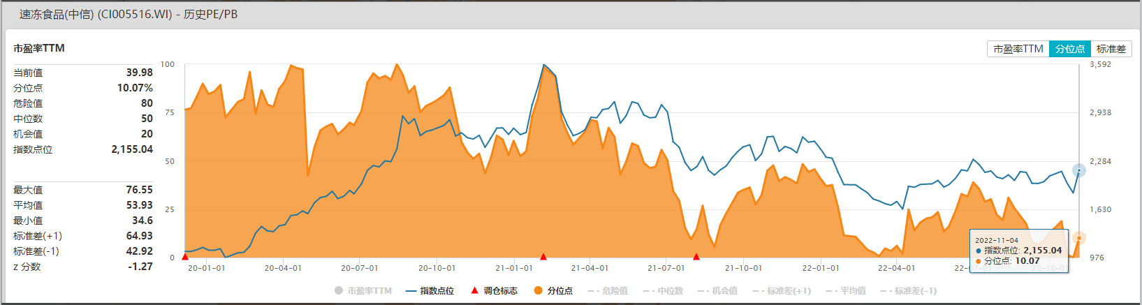速冻食品:市盈率(TTM)为39.98,分位点10.07%。