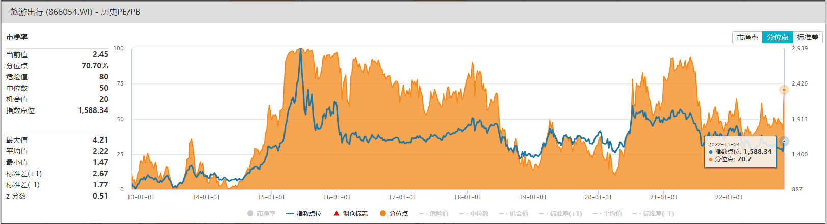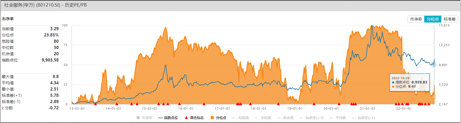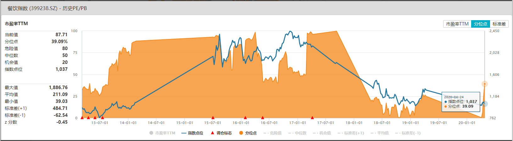 餐饮:市盈率(TTM)为87.71,分位点39.09%。