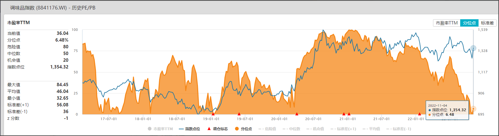 调味品:市盈率(TTM)为36.01,分位点6.48%。