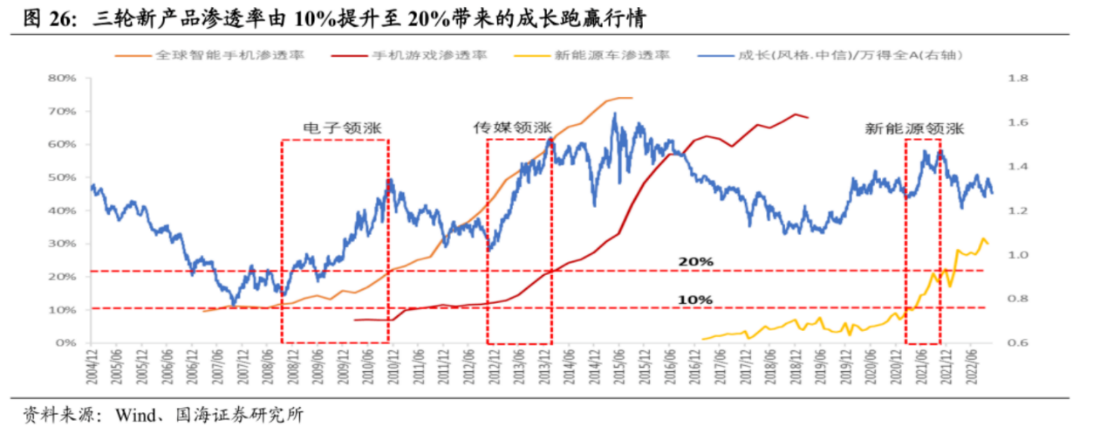 以史为鉴渗透率10%-20%时期成长股超额收益最丰厚 中国新能源汽车单月渗透率最高超30% 买气最为可靠的iphone14 pro降价验证电子行业复苏观点或过热