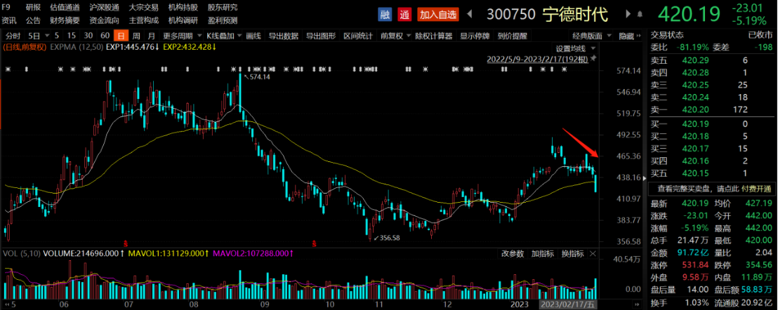 创业板指数第一大权重股宁德时代周五收盘大跌超5%,自1月30日高点迄今股价累计最大跌幅达14%;锂电龙头亿纬锂能和磷酸铁锂龙头德方纳米同期累计最大跌幅分别达16%、17%。光伏板块方面,HJT设备龙头迈为股份、逆变器龙头阳光电源和锦浪科技自1月30日高点迄今股价累计最大跌幅分别达20%、17%、14%。医药板块方面,全球一体化CXO龙头康龙化成、与默沙东续签代理协议落地的智飞生物自1月30日高点迄今股价累计最大跌幅分别达25%、17%。