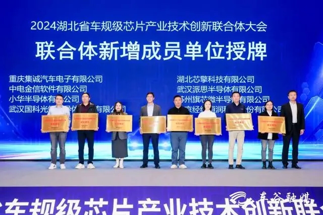 大会现场颁发了东风高边驱动芯片车规认证证书,发布创新联合体发展规划,并向开特汽车、芯擎科技等17家创新联合体新增成员单位授牌。至此,创新联合体成员单位达44家,覆盖车规芯片标准、设计、制造、封装、应用等全产业链。