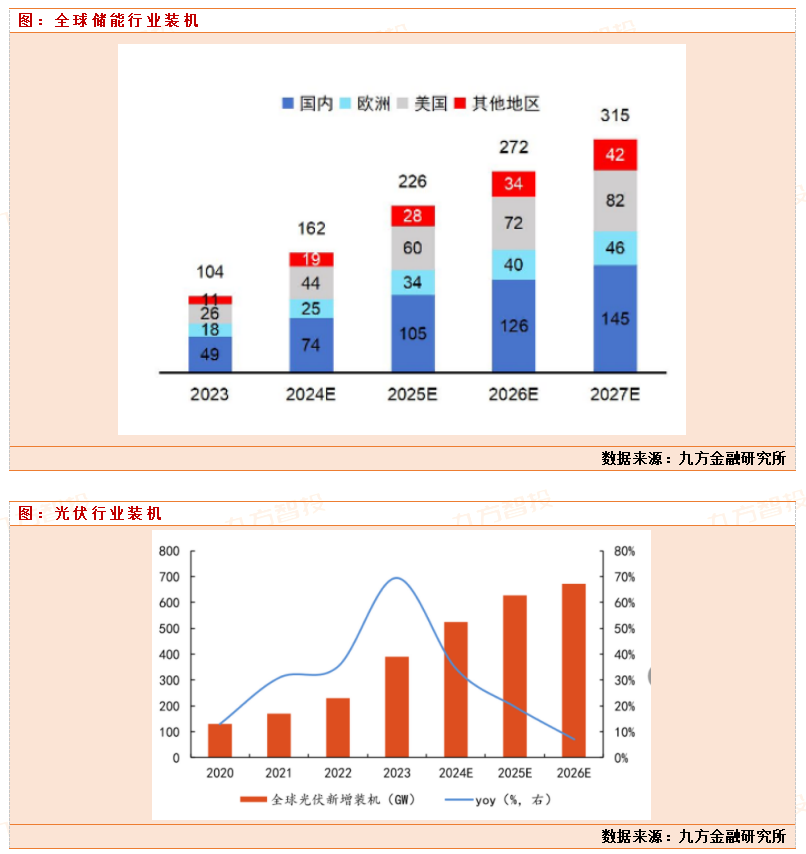 根据国家能源局的数据,截至2023年12月底,国内光伏新增装机为216.88GW,同比大增148%。2024年全球市场增速接近30%,国内可能在220GW上下。预期2024年光伏行业装机规模在524GW左右,2023-2026年全球光伏装机复合增速有望达20%。光伏逆变器需求也将未来保持20%以上的增长。