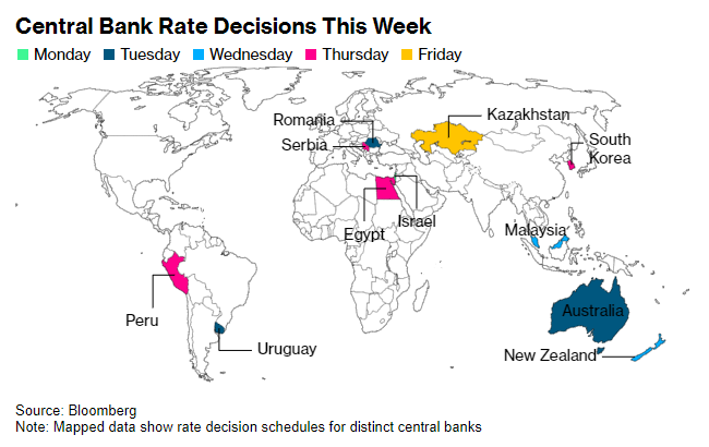 本周亚洲将密集迎来央行决议和关键宏观指标,这些将帮助确定该地区下半年的经济走势。澳大利亚、新西兰、韩国和马来西亚的货币政策成为焦点,各国官员需权衡近期通胀趋势与放缓的增长动能。