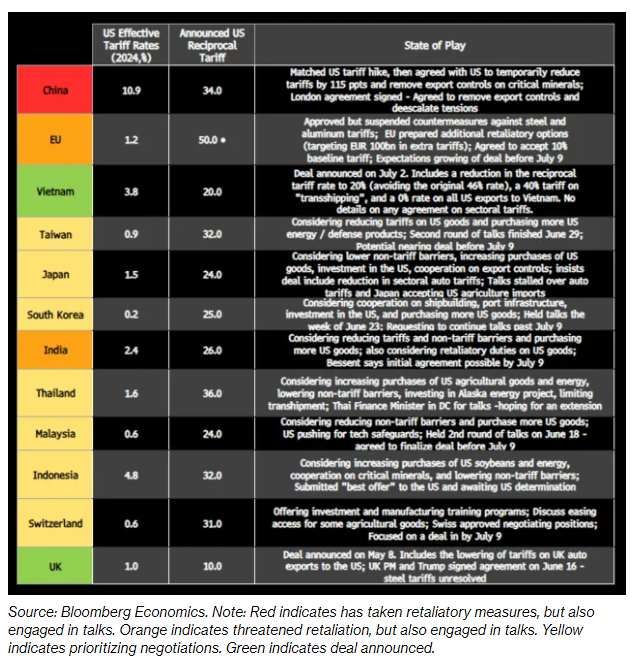 7月9日大限将至,各国谈判代表正进行最后冲刺。财政部长斯科特·贝森特周日接受采访时表示:“未来72小时我们将马不停蹄。”