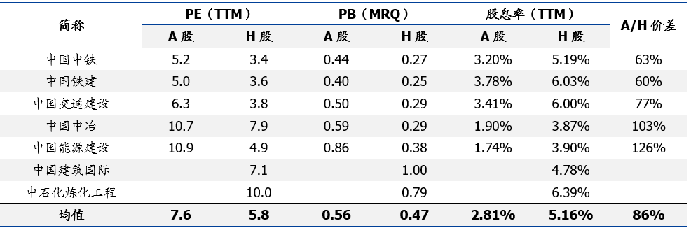 当前建筑央企港股估值极低、A/H价差大、股息率高,展望后续:1)有望受益于保险等中长期资金配置需求增加;2)有望受益于下半年增量财政政策发力,带动基建实物工作量加速落地,从而驱动央企营收业绩提速;3)有望受益央企系列市值管理举措,以及提升经营质量,从而推动估值加速回升。重点推荐和关注建筑央企港股龙头中国交通建设(PB 0.29X,25E股息率6.4%)、中石化炼化工程(PB 0.79X,25E股息率7.1%)、中国铁建(PB 0.25X,25E股息率5.8%)、中国中铁(PB 0.27X,25E股息率5.3%)、中国建筑国际(25E股息率5.3%)、中国中冶(PB 0.29X,25E股息率4.3%)、中国能源建设(PB 0.38X,25E股息率4.3%)。