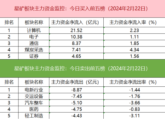 从主力板块资金监控数据来看,计算机板块主力资金净流入居首。